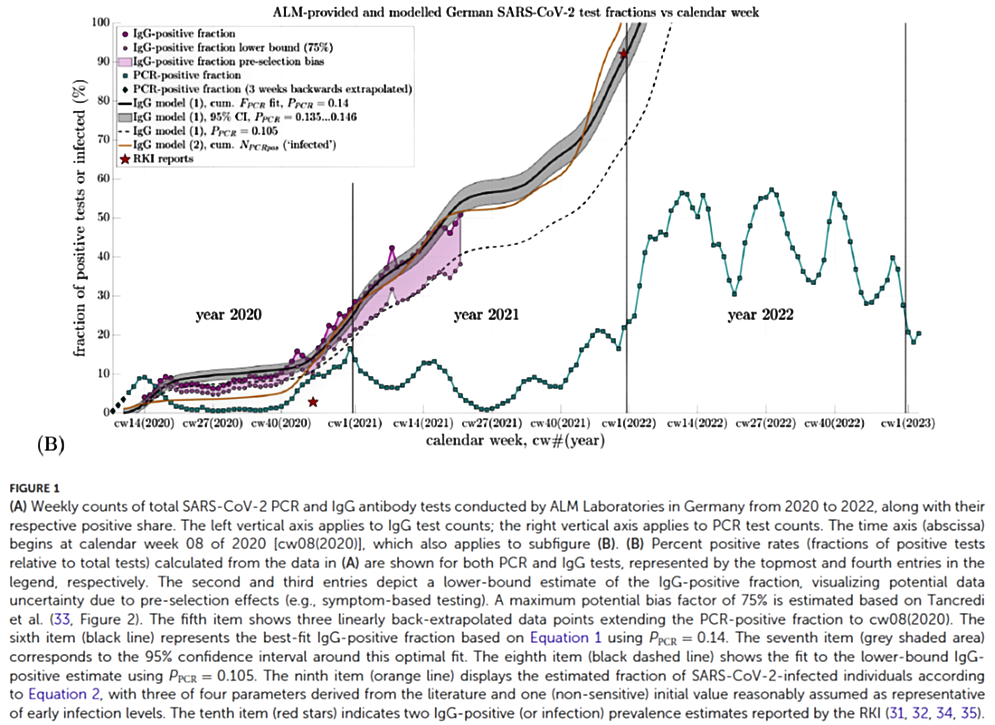 „RKI-Files“ nenne ich hier die von Herrn Schreyer und seinem Multipolarmagazin freigeklagten Unterlagen des RKIs. Das sind vor allem Sitzungsprotokolle über die Vorgänge, die zur Ausrufung eines nationalen Notstands mit all den Folgen führten: Ausgangssperren, Restaurant-, Theater-, Sportclub- und andere Schließungen, im Volksmund „Maßnahmen“ genannt. Sie sind in ihrer ganzen Fülle verfügbar und wurden vom Multipolarmagazin und anderen bereits ausführlich kommentiert (RKI-Protokolle 1 und RKI-Protokolle 2). Ich will auf ein paar wichtige Details hinweisen und im zweiten Teil dieses Beitrags eine Studie besprechen, bei der ich ein bisschen mitgeholfen habe und die jetzt auf dem Preprintserver Zenodo zur Verfügung steht [1]. Sie zeigt: Gerade mal 13,5 % aller Menschen, die jemals PCR-positiv auf SARS-CoV-2 getestet wurden, waren auch wirklich infiziert bzw. hatten eine Immunreaktion, nachweisbar durch IgG-Antikörper. Das wusste das RKI schon sehr früh bzw. hätte es wissen können. Man hätte also mit dem Testwahn und den Maßnahmen sehr bald aufhören können, wenn man denn gewollt hätte. Das Ganze läuft also wie ein Zug auf zwei Schienen. Beide Schienen heißen „politischer Wille“. Und der Zug fährt eben genau nicht in Richtung „Fürsorge für die Bürger“. Wohin er fährt, weiß ich nicht. Aber ich weiß, dass all das nichts mit Fürsorge und Sorgfalt zu tun hatte, sondern allenfalls mit politischer Macht.